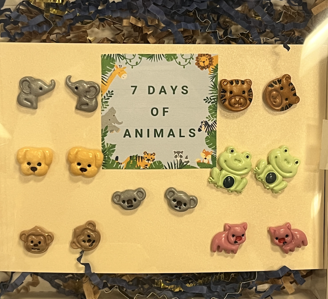 Set of 7 animal stud earrings in a gift box, perfect for any animal lover!