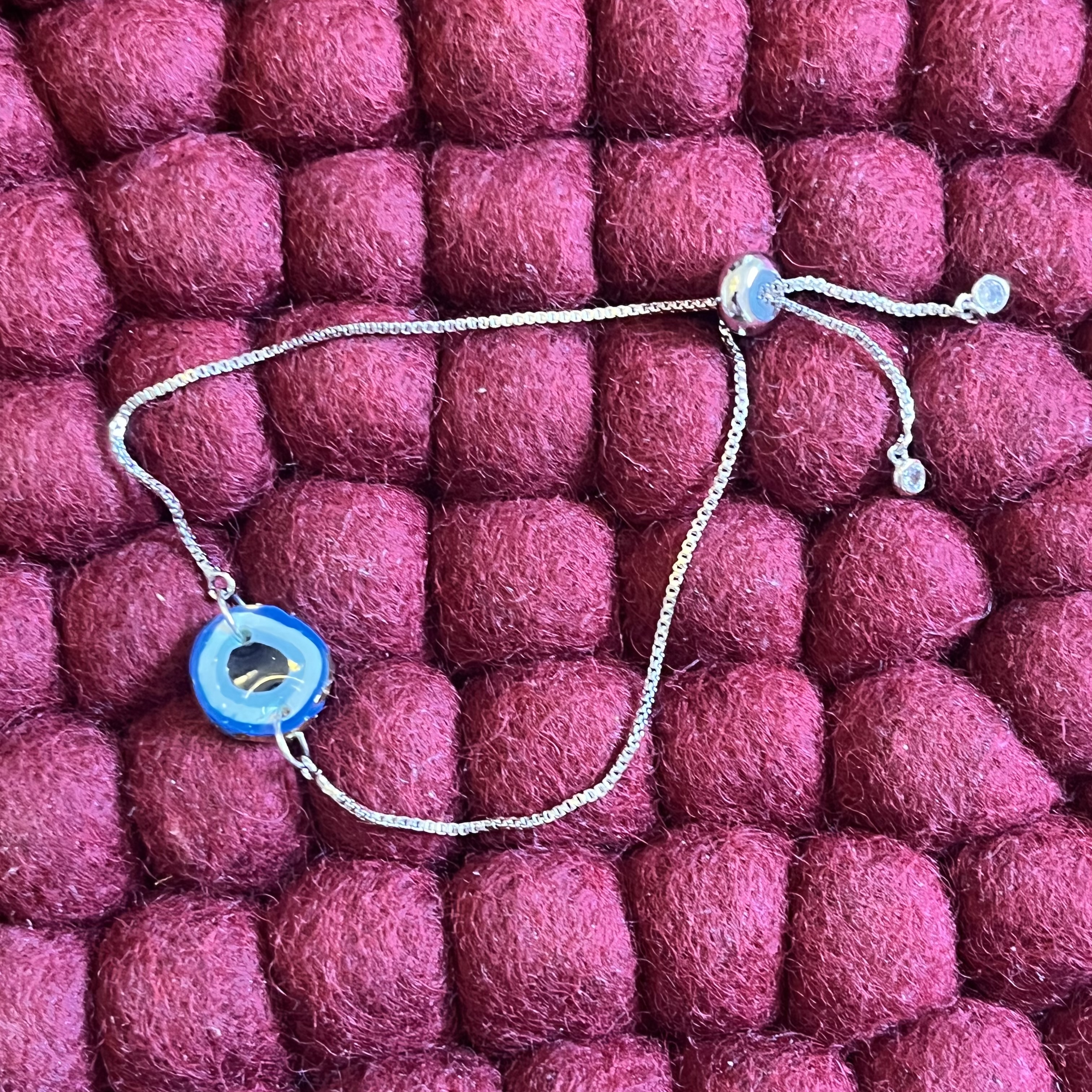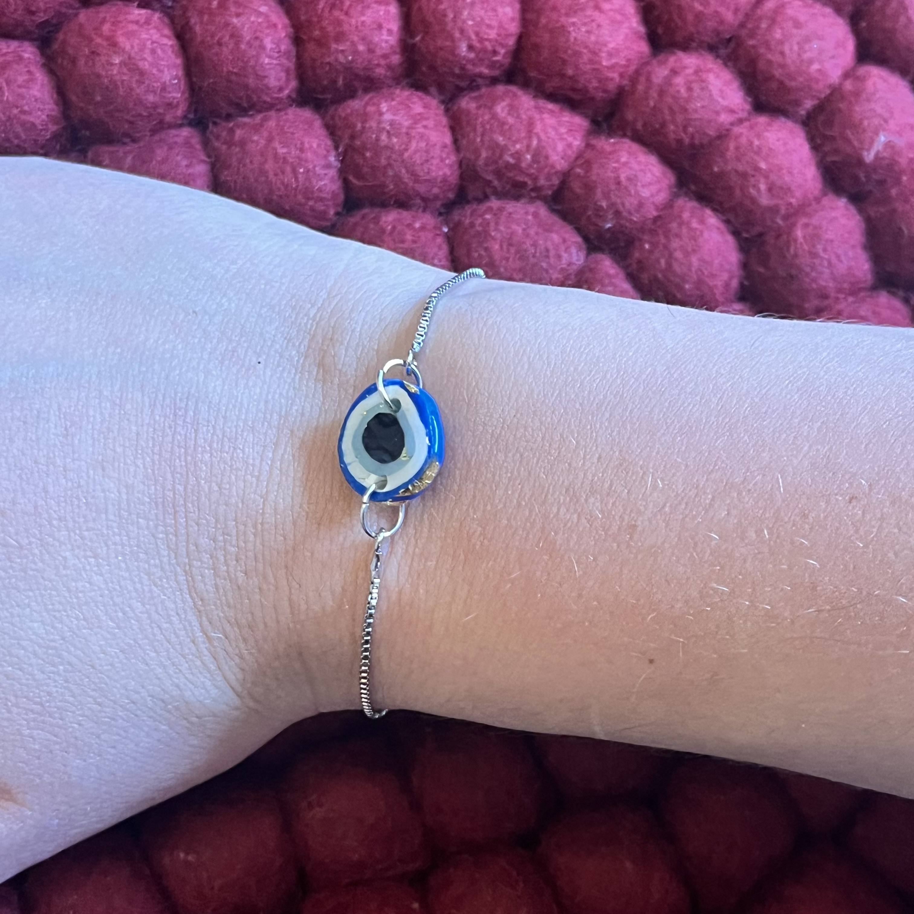 This All Seeing Evil Eye Slider Bracelet is hand crafted with love.