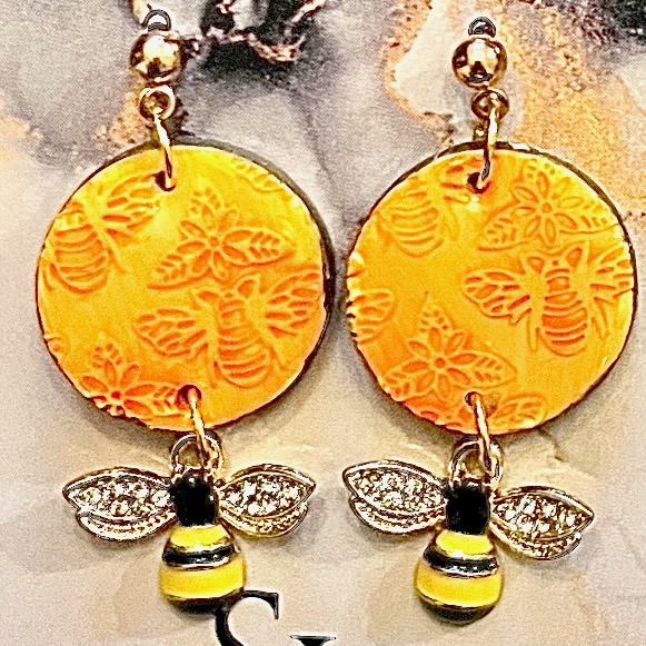 These Bee Texture Polymer Clay Stud Dangle Earrings are hand crafted with love.