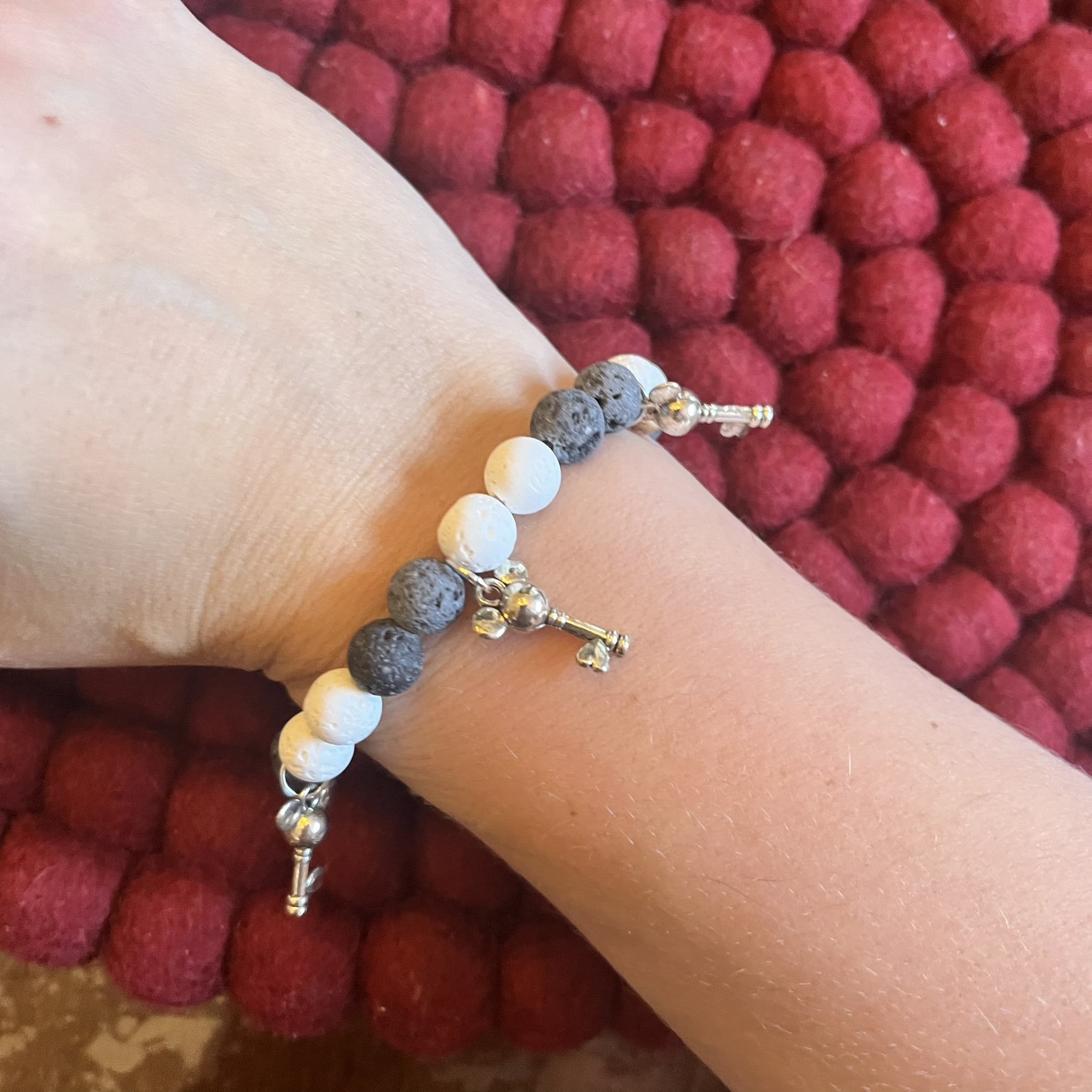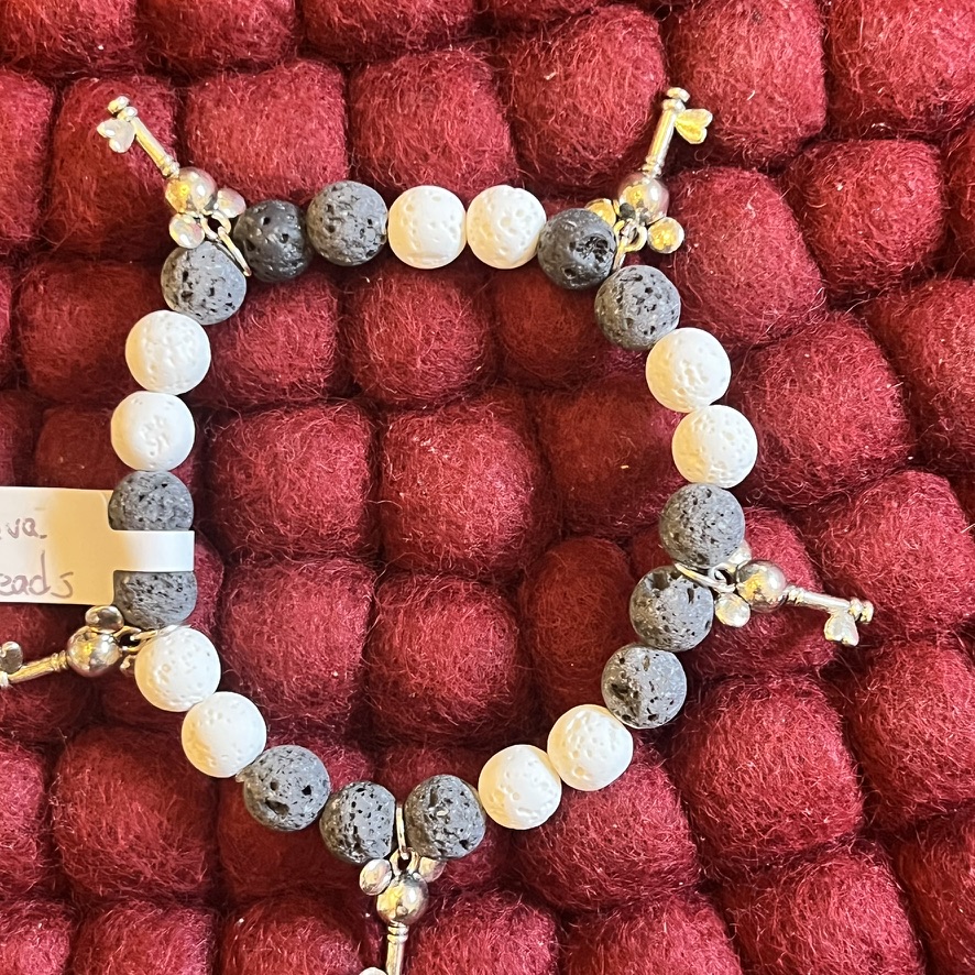 This Lava Bead + Mouse Head Key Bracelet is hand crafted with love!