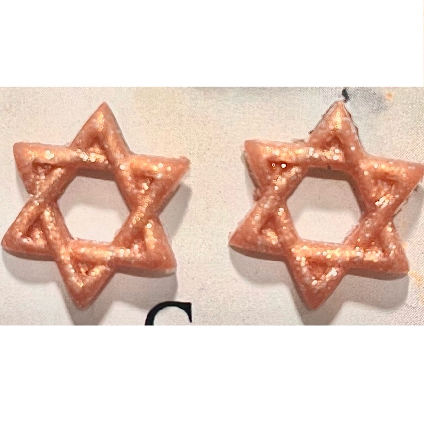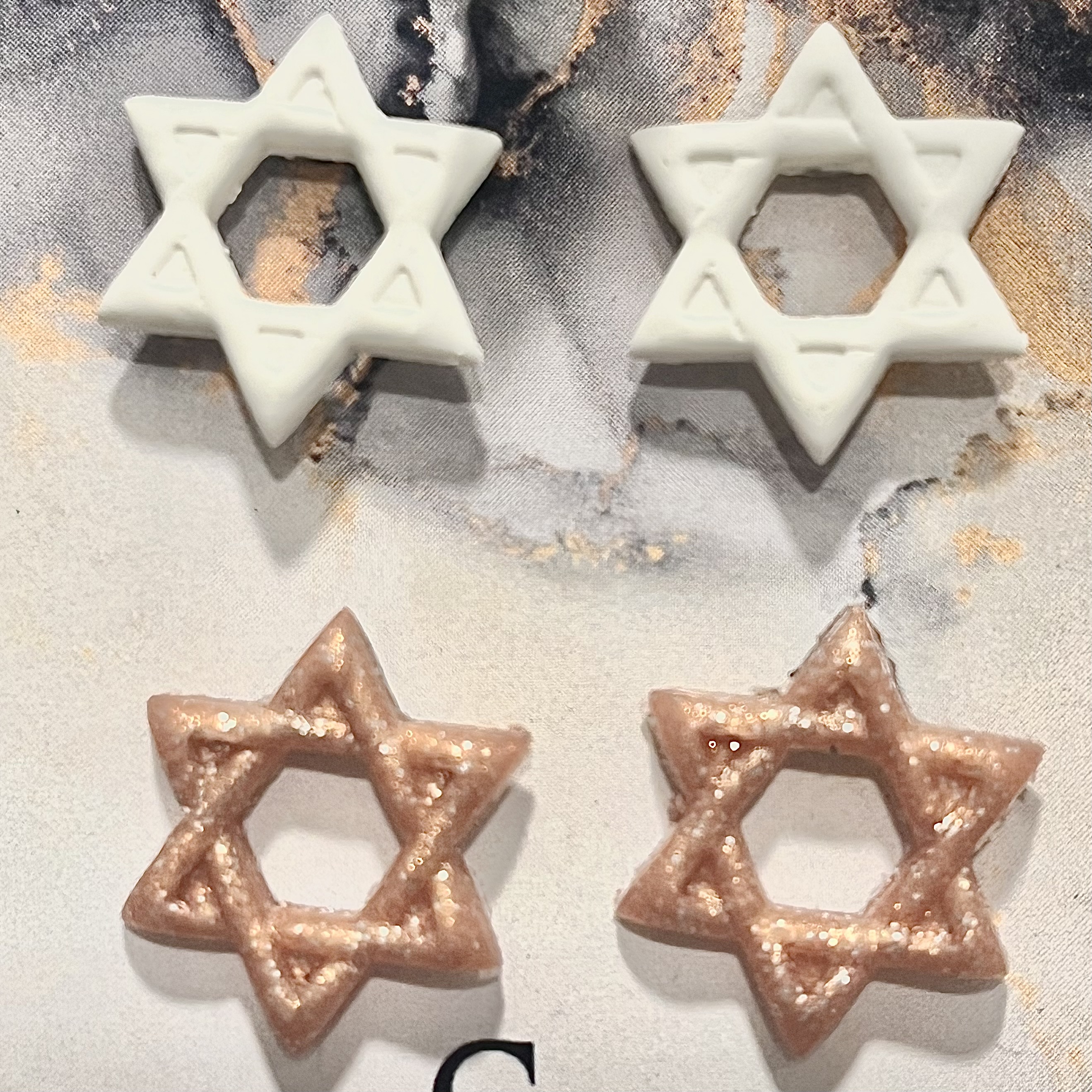 These Magen David Polymer Clay Stud Earrings are hand crafted with love.