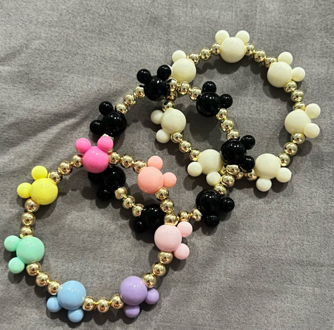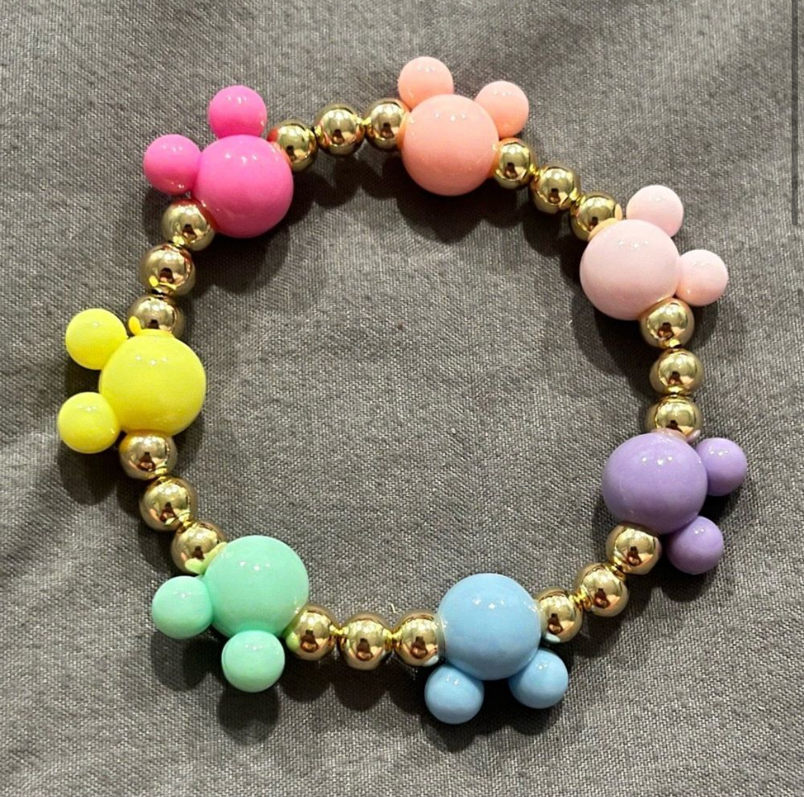 This Colorful Mickey Mouse Head & Round Gold Beaded Bracelet is hand crafted with love.