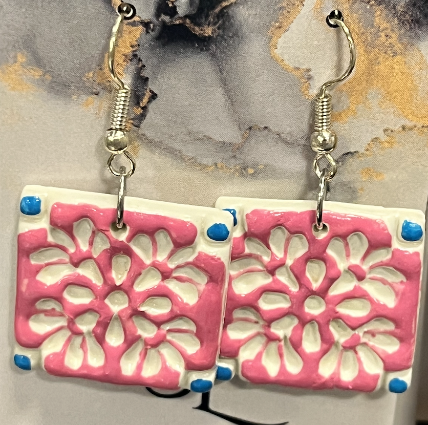 These Painted Tile Polymer Clay Dangle Earrings are hand crafted with love in Connecticut by me.