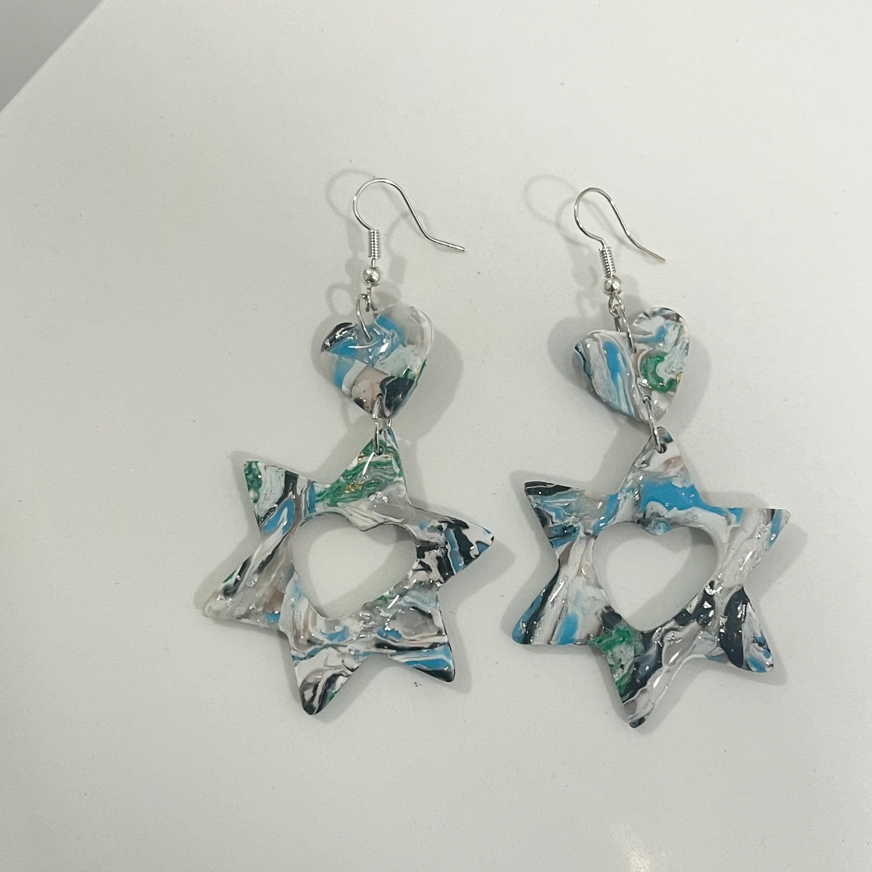 These Star of David Faux Stone Swirl Polymer Clay Dangle Earrings are hand crafted with love.