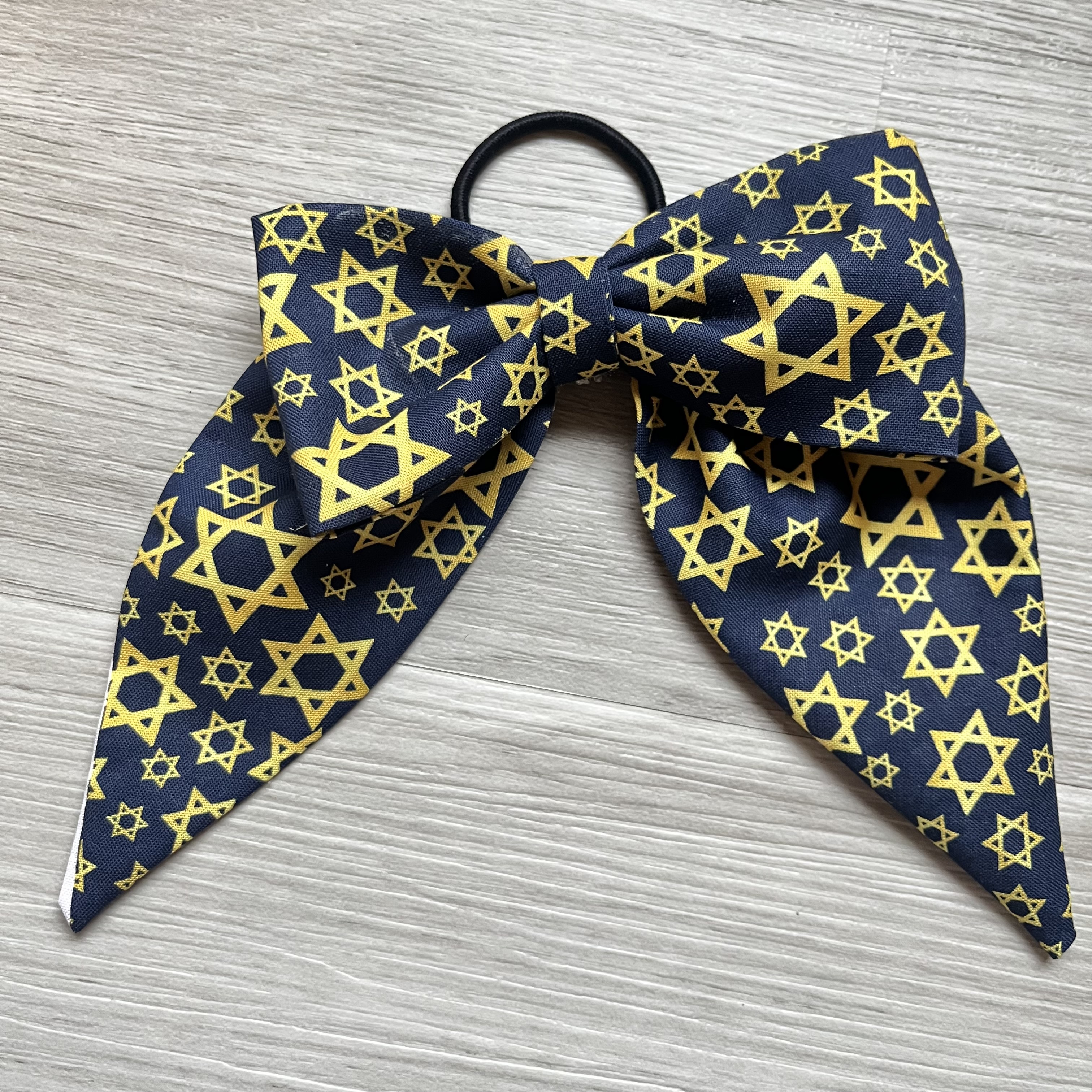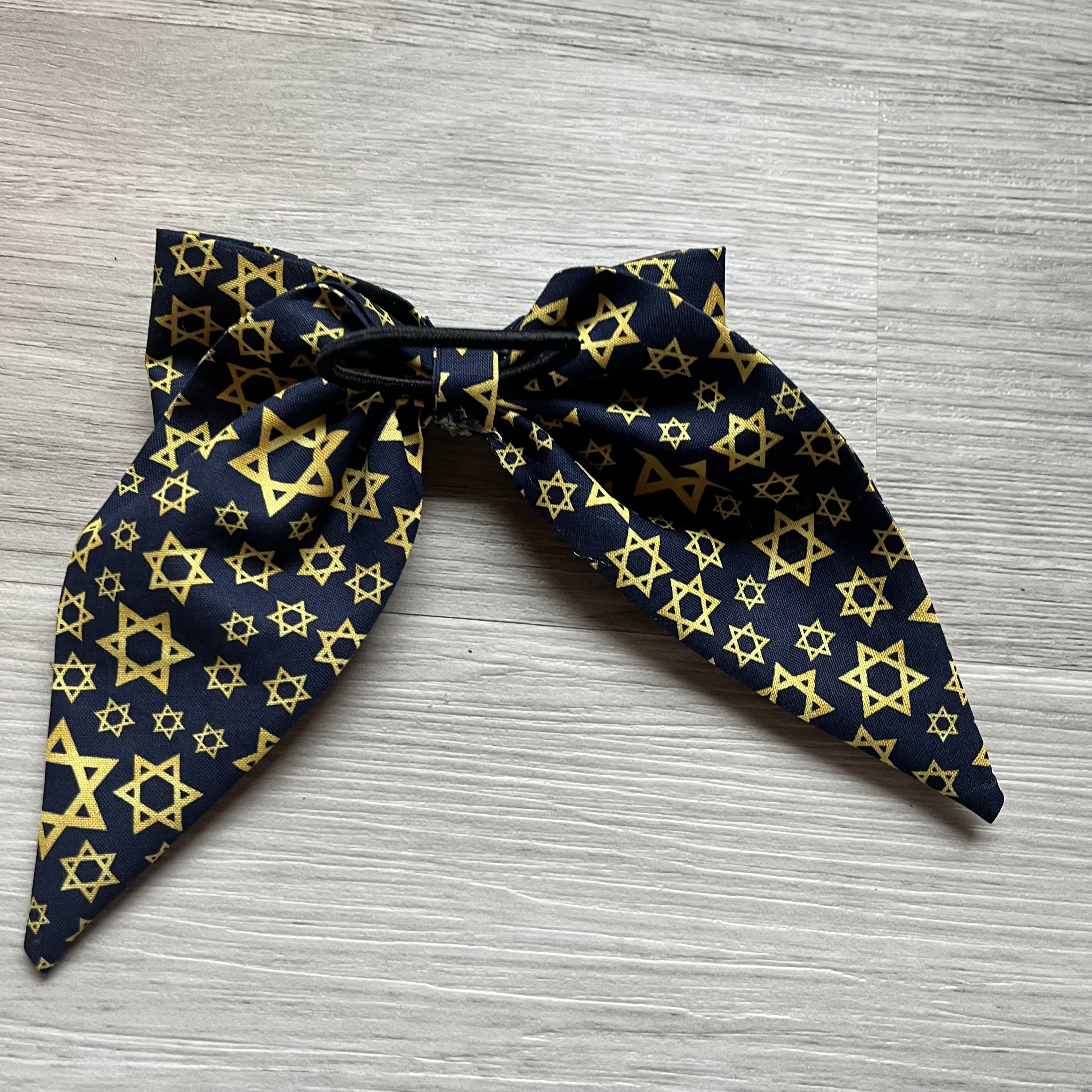 Star of David Navy & Gold Print Fabric Bow Ponytail
