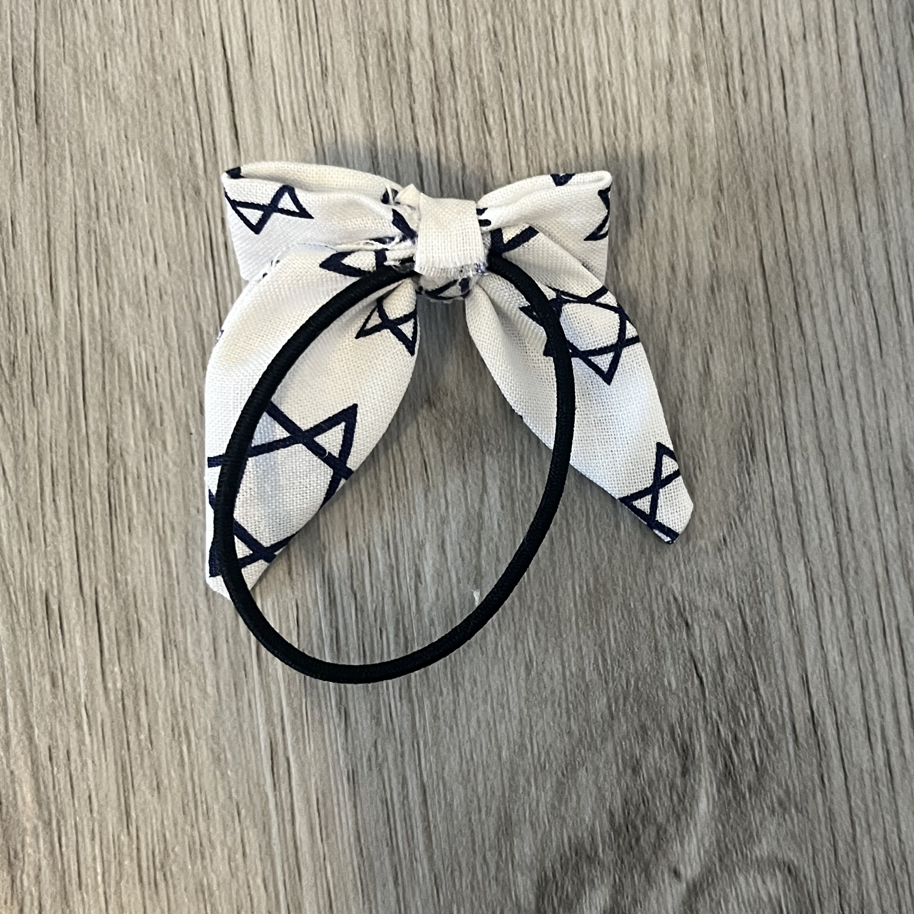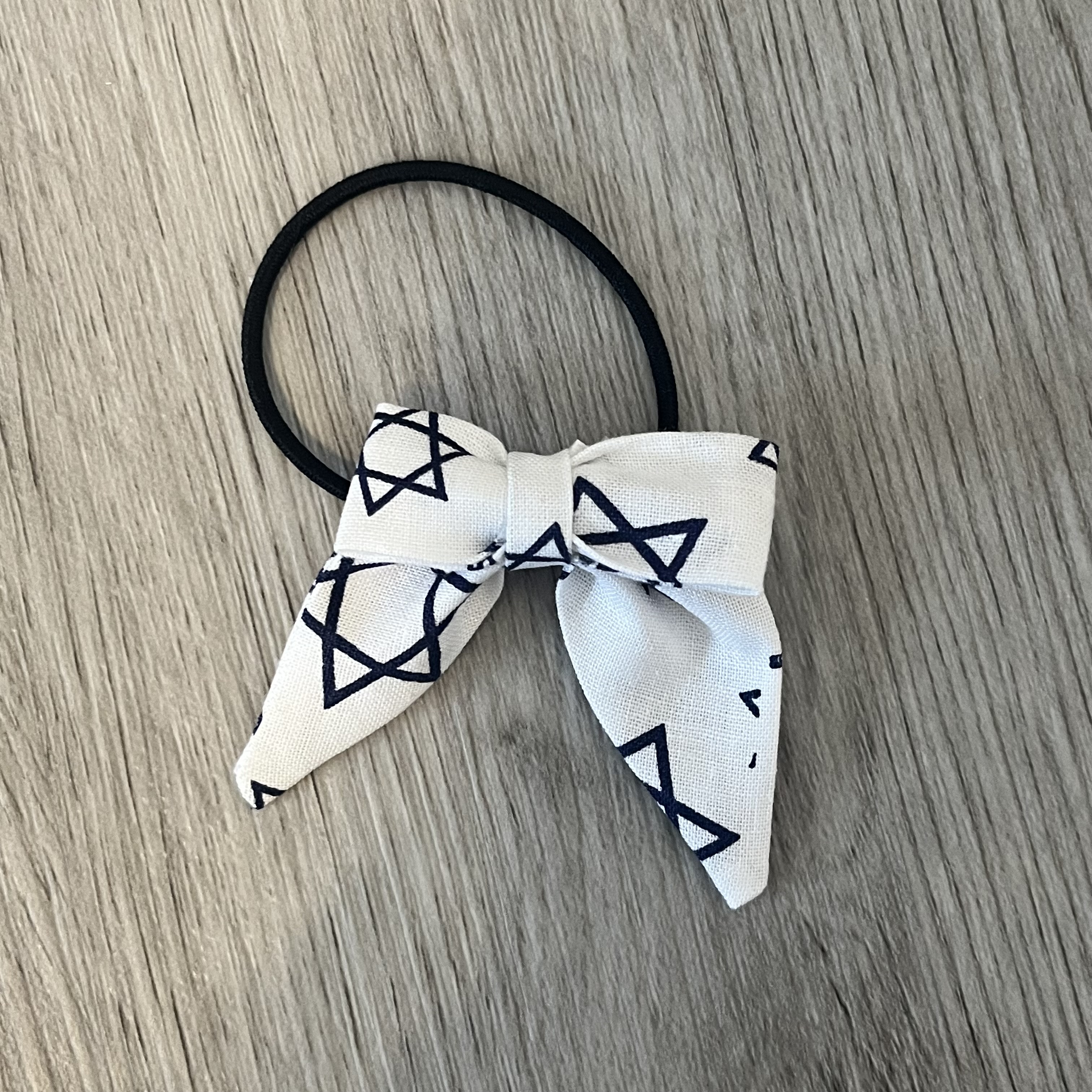 This Star of David Print Fabric Bow Mini Ponytail is handcrafted and sewn by me.