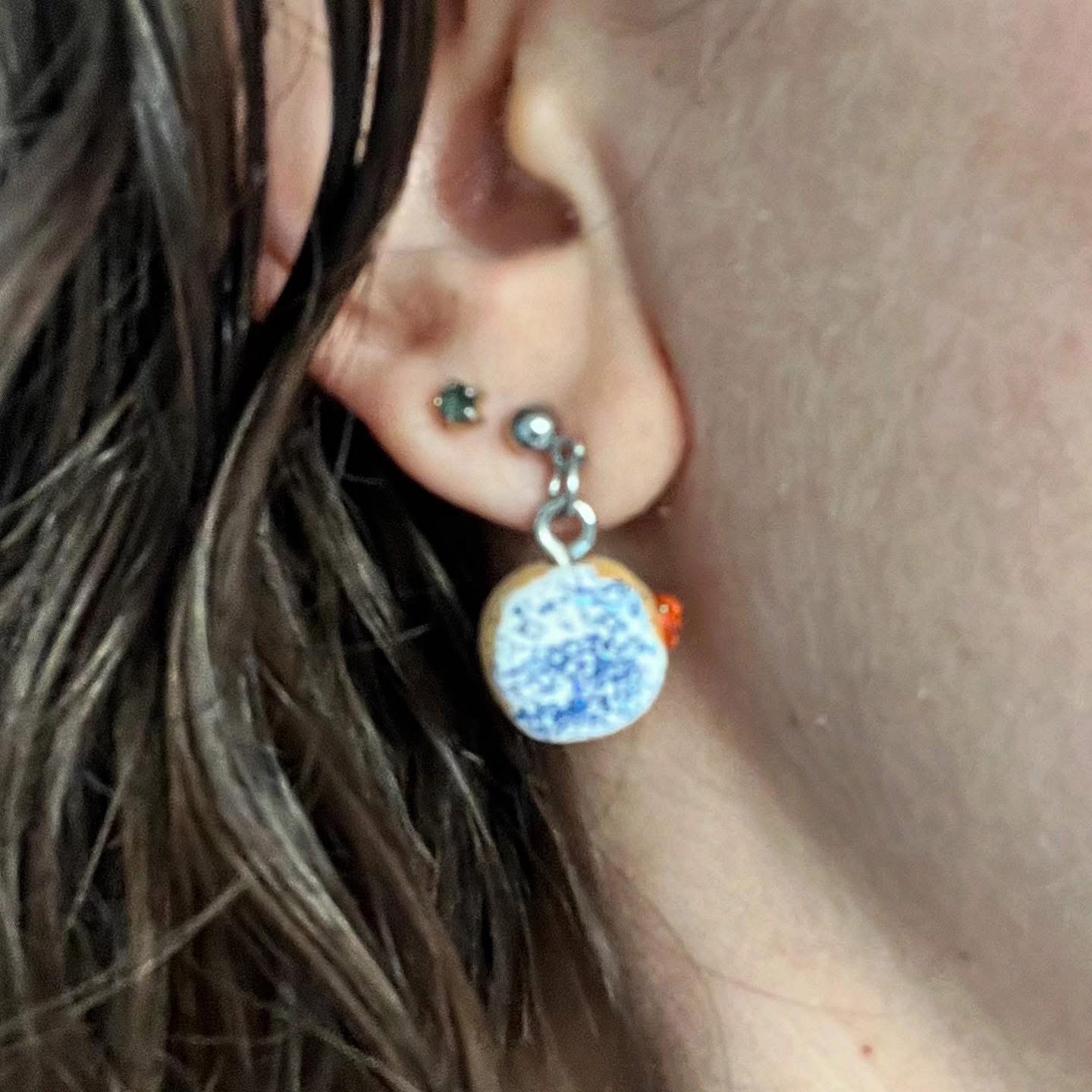 Satisfy your sweet tooth with these delicious jelly filled sufganiyot earrings! Made of high-quality polymer clay, these doughnuts are a unique and fun addition to any outfit. Don't worry, they won't crumble or ooze jelly! Perfect for the quirky fashionista or foodie in your life.