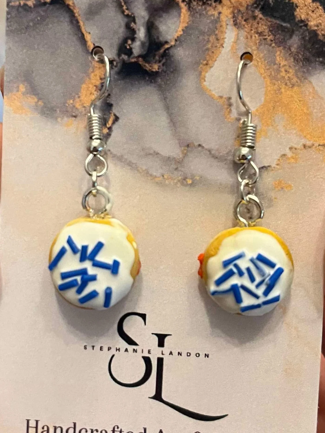 These Sufganiyot Polymer Clay Dangle Earrings are hand crafted with love in Connecticut by me.