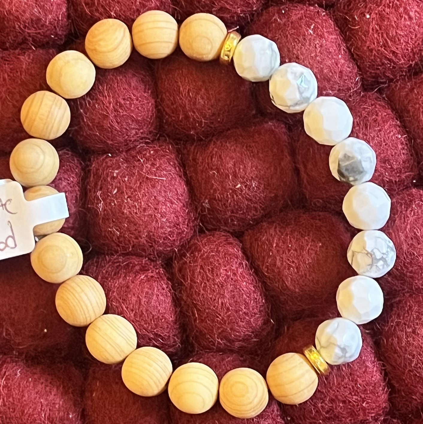 This White Faceted Howlite + Wood Bracelet is hand crafted with love!